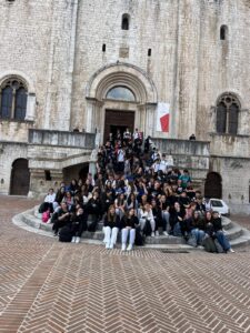 Nel pomeriggio, il gruppo ha raggiunto Gubbio, dove ha esplorato il suggestivo centro medievale, il Duomo, la scenografica Piazza Grande, il Palazzo dei Consoli e il Teatro Romano. Dopo una giornata intensa, gli studenti sono rientrati in hotel per la cena e il meritato riposo.
